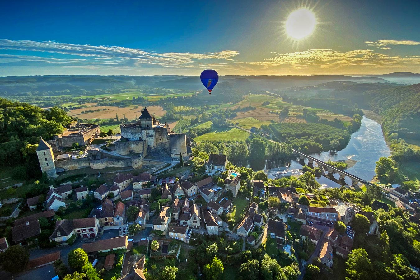 Ballonvaart bij zonsopkomst: Voor een magisch uitzicht over het landschap en kastelen.